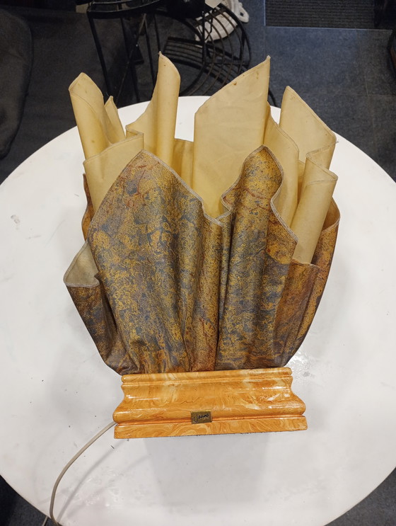 Cette lampe de table Janna unique dégage une élégance raffinée qui s'intègre parfaitement dans un intérieur stylé. Avec son design artistique et sa palette de couleurs chaudes, elle apporte une touche Art déco à n'importe quel espace. L'abat-jour, confectionné dans un tissu de haute qualité, est soigneusement plié pour créer un effet sculptural à la fois fonctionnel et décoratif. Le pied en bois assure une grande stabilité et souligne la beauté naturelle du design. Cette lampe est bien plus qu'une simple source de lumière : c'est une véritable œuvre d'art. Apportez une touche de sophistication à votre intérieur avec cette magnifique lampe Janna.