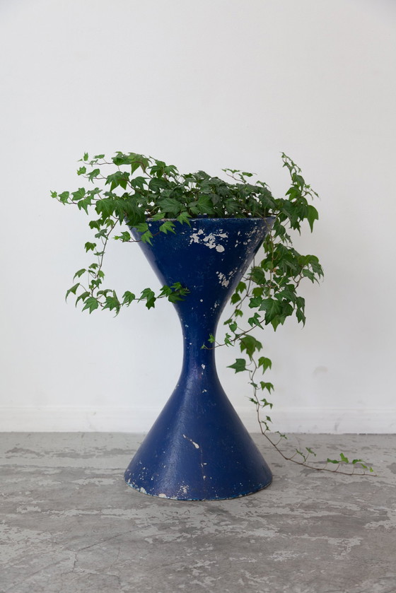 Jardinière diabolo produit dans les années 50. Sa structure est entièrement composée de fibrociment. En bon état, quelques traces d'usures liées au temps et à l'utilisation.