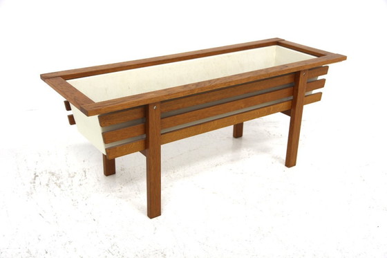 Jardinière d'intérieur en chêne conçue en Suède dans les années 1960. Bac en plastique. En excellent état vintage avec de minimes marques d'usures. Conforme à l'état vintage. 26672