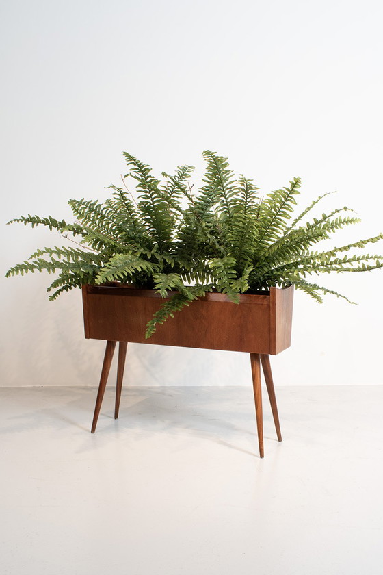 Jardinière en teck sans doublure. Un objet décoratif et élégant qui apportera une touche raffinée à votre intérieur. En bon état vintage.