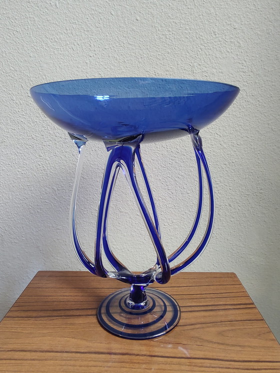 Il s'agit d'un superbe bol en verre de Jozefina Krosno, au design moderne avec d'élégants éléments bleus et transparents. La structure unique et le flair artistique de ce bol en font une pièce maîtresse parfaite pour une table ou un étalage. Fabriqué en verre de haute qualité, il témoigne de l'engagement de la marque en faveur d'un artisanat et d'un design exquis.