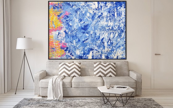 Expédition sous 1 à 3 jours ouvrés après réception du paiement depuis l'Allemagne. Malgré la grande taille de la toile, aucun dommage n'est possible. L'œuvre est emballée dans un carton robuste, de haute qualité et de fabrication professionnelle. Nous avons une longue expérience du transport d'œuvres d'art à l'international.