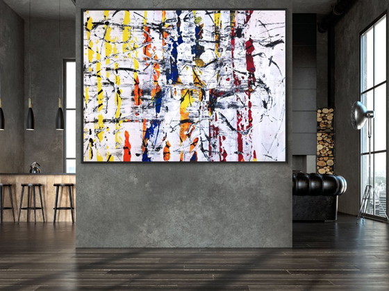 Le tableau mesure 115 x 150 cm et dispose de l'espace nécessaire sur chaque bord pour être tendu sur un châssis de 100 x 140 cm. Épaisseur du châssis : 2 à 5 cm.