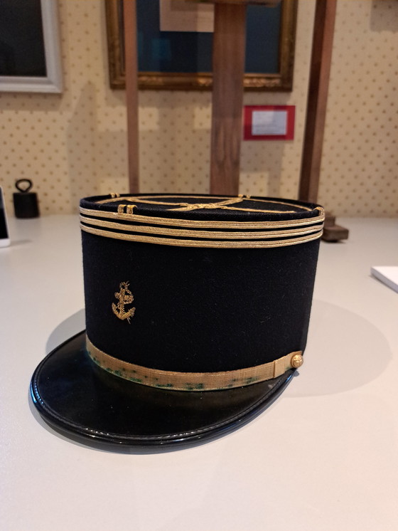 Avec son élégant tissu noir et ses détails dorés raffinés, ce képi dégage un charme intemporel qui s'intègre parfaitement dans un décor classique ou historique.