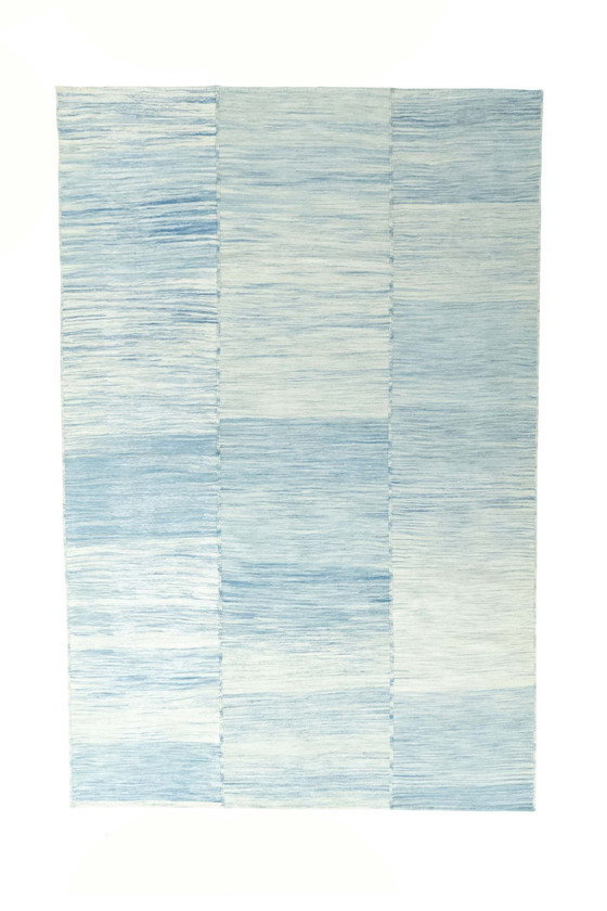 Ce tapis kilim design noué à la main se distingue par son design moderne et sobre dans des tons bleus doux. Il allie l'artisanat traditionnel à une esthétique contemporaine et est idéal pour conférer à chaque pièce une atmosphère calme et élégante. Détails du produit : Dimensions : 303 x 202 cm Matériau : 100 % laine de haute qualité - durable et agréablement doux Technique de nouage : Noué à la main - précision et qualité exceptionnelles Design : Motif intemporel et moderne dans des tons bleus clairs Origine : Artisanat traditionnel allié à un style contemporain État : Nouveau Particularités : Nouveau : Fabriqué de manière durable à partir de matériaux naturels Parfaitement adapté au salon, à la chambre à coucher ou à la salle à manger Structure douce et sensation agréable sous les pieds Expédition : Votre tapis est soigneusement emballé et expédié par UPS. Un numéro de suivi est fourni pour que vous puissiez suivre votre livraison à tout moment. Ajoutez une touche d'élégance et de qualité à votre intérieur avec ce kilim design unique ! NR : 50801