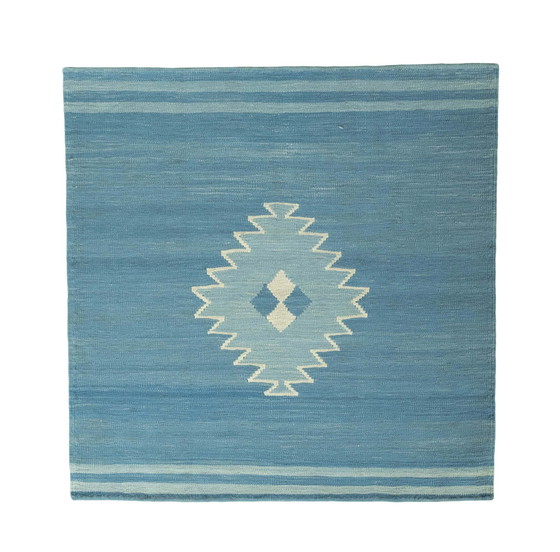 Ce kilim design tissé à la main est une véritable œuvre d'art et son design minimaliste s'intègre parfaitement dans les pièces modernes et traditionnelles. Les tons bleus harmonieux, associés au motif géométrique clair, confèrent au tapis une allure élégante et intemporelle. Avec ses dimensions de 116 x 114 cm, le kilim convient parfaitement aux petites surfaces ou comme pièce d'accentuation. Dimensions : 116 x 114 cm Caractéristiques : Kilim design tissé à la main Bleu et blanc apaisants dans un design géométrique Fabriqué à partir de matériaux de haute qualité, facile à entretenir et durable Parfaitement adapté aux petits espaces ou comme pièce décorative Expédition sûre et assurée : Nous proposons une expédition sûre et assurée pour que le tapis arrive chez vous en toute sécurité. NR : 54693