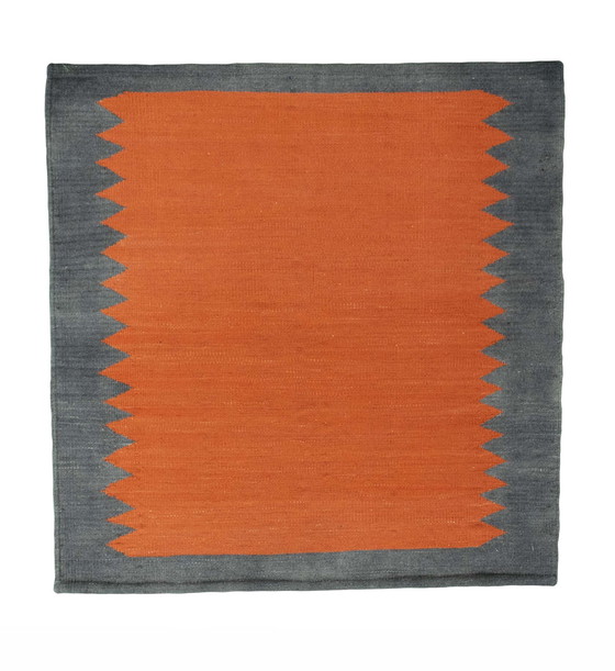 Ce kilim design tissé à la main se distingue par son design à la fois simple et puissant. La teinte orange soutenue, combinée à une nuance grise atténuée, crée un contraste visuel unique qui donne à cette œuvre d'art un aspect vivant mais discret. Avec ses dimensions compactes de 95 x 92 cm, ce kilim convient parfaitement aux petites pièces ou comme élément décoratif phare dans chaque maison. Dimensions : 95 x 92 cm Caractéristiques : Kilim design tissé à la main Design frappant en orange et gris Fabriqué à partir de matériaux de haute qualité, facile à entretenir et durable Idéal pour les petites surfaces ou comme pièce d'accent Expédition sûre et assurée : Nous proposons une expédition sûre et assurée pour que le tapis arrive chez vous en toute sécurité. NR : 55459