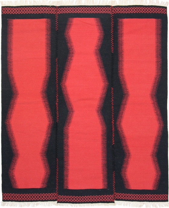 Kilim moderne tissé à la main 200x165. Kilim moderne en laine naturelle et couleurs végétales très douces et belles. Le design de ce kilim a été tissé il y a longtemps au Mazandaran, en Iran, et ce produit est actuellement fabriqué en Inde.