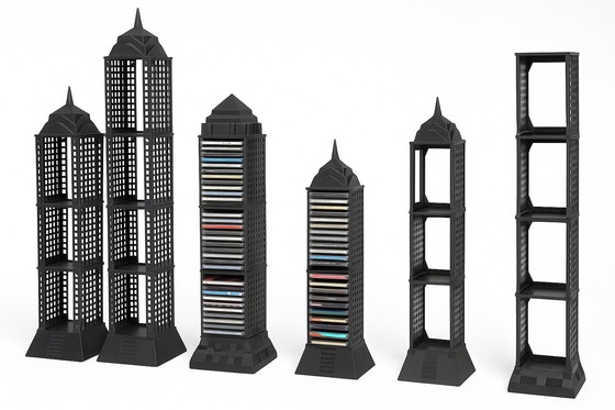 Transformez votre espace avec le porte-CD de Koziol Design, une pièce de collection qui allie fonctionnalité et esthétique architecturale saisissante. Cette solution de rangement unique est conçue pour ressembler à un gratte-ciel moderne, ce qui en fait un ajout remarquable à n'importe quelle pièce.