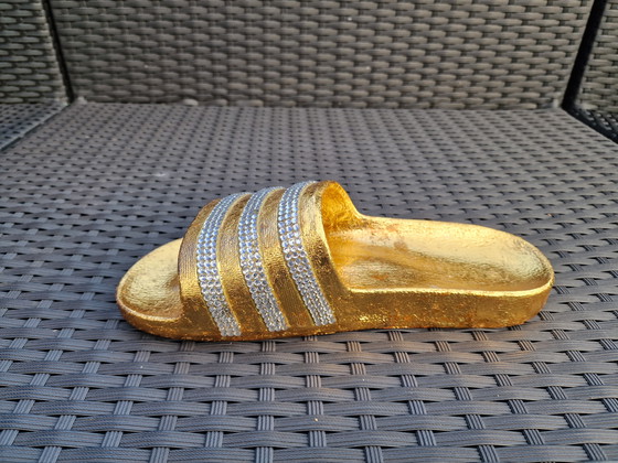 Cette pantoufle dorée est un objet décoratif qui attire l'attention et ajoute une touche de glamour à n'importe quelle pièce. Avec sa finition dorée brillante et ses détails bling-bling, elle attire immédiatement l'attention. Parfait pour les amateurs de décorations uniques et modernes.