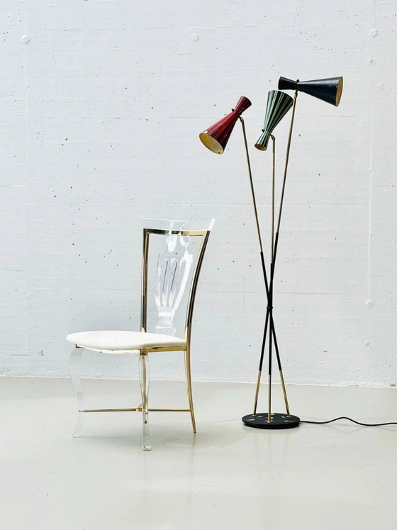 L'objet présenté est un lampadaire exceptionnel à trois lumières des années 1960, typique du style italien du milieu du XXe siècle.