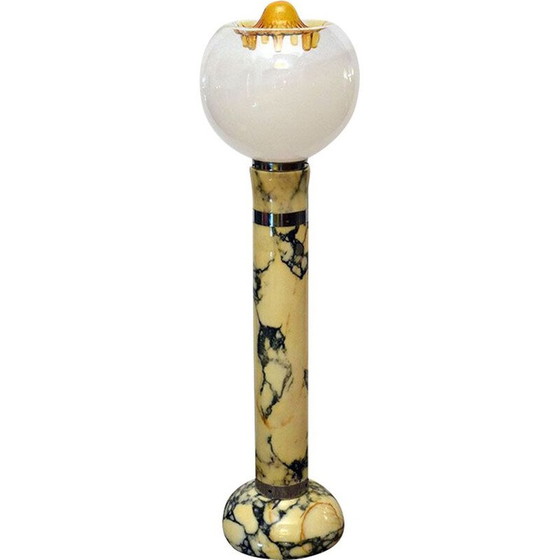 Base et tige en marbre, diffuseur en verre soufflé tricolore.