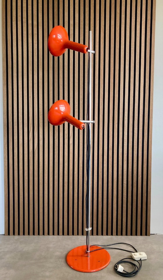 Envie d'une pièce vintage unique et originale pour votre salon ? Ne manquez pas ce rare lampadaire Marinella. D'une superbe couleur orange vintage, il a été conçu par P.J. Copini dans les années 1970 pour Gepo Lamps Amsterdam.