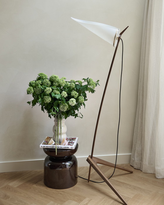 Je suis le premier propriétaire et la lampe n'a que 3 ans. Illuminez votre espace avec le lampadaire Joe Armitage, un chef-d'œuvre de design moderne qui allie harmonieusement forme et fonction. Cette lampe raffinée est dotée d'un abat-jour blanc élégant qui diffuse la lumière avec subtilité, créant une ambiance chaleureuse et accueillante. Son pied en bois brun foncé, rehaussé de détails en laiton, apporte une touche de sophistication à n'importe quelle pièce.