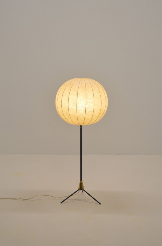 Lampadaire trépied vintage en forme de cocon avec accents en laiton, années 1960
