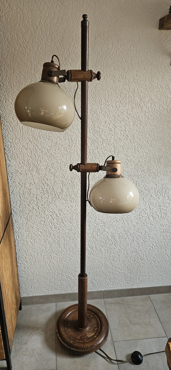 Lampadaire vintage en bois Herda en forme de champignon