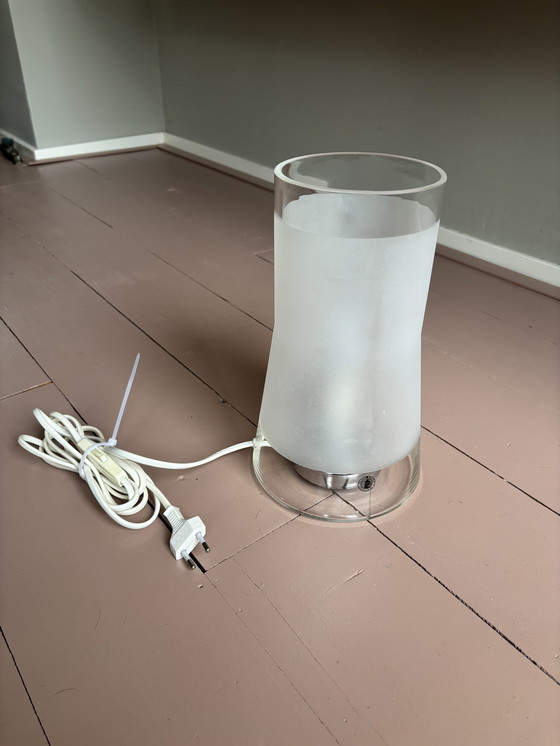 Magnifique lampe IKEA vintage des années 1980 avec verre fait à la main. Belle combinaison de verre dépoli et de verre clair.