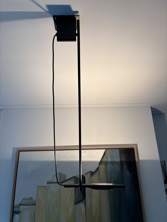 Suspension Duna de PAF Studios et Italiana Luce, conçue par Mario Barbaglia et Marco Colombo. Intensité variable, inclinable et hauteur réglable. Un lampadaire assorti (Duna terra) est également disponible, réglable en hauteur, inclinable et intensité variable.