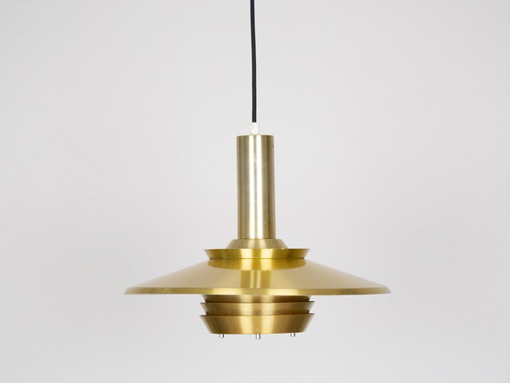 Lampe danoise en aluminium des années 1960. Elle rappelle les créations de Carl Thore.