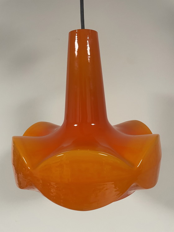 Illuminez votre intérieur avec cette superbe suspension vintage signée Peill & Putzler. Confectionnée en verre opalin orange éclatant, cette pièce attire tous les regards et apporte une touche de couleur et de charme rétro à n'importe quelle pièce. Parfaite pour les amateurs de style mid-century, cette lampe allie élégance et fonctionnalité.