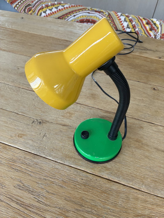 Matériaux : Métal (pied et abat-jour) avec un col flexible en plastique ou en métal.
