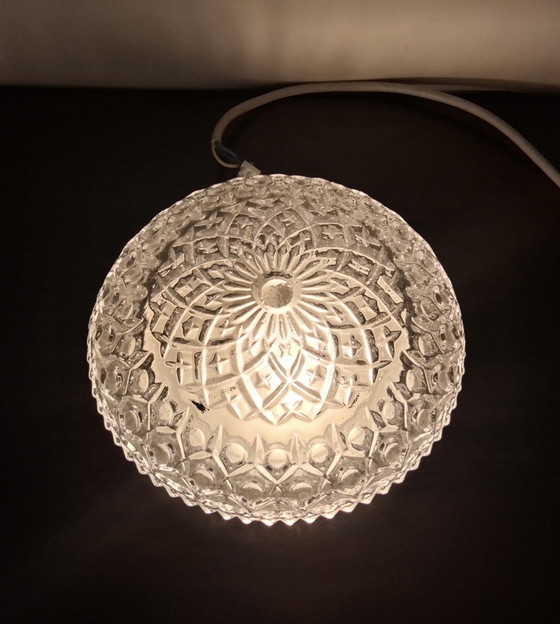 Illuminez votre espace d'une touche d'élégance vintage avec ce plafonnier original des années 1970. Son design en verre finement travaillé diffuse une lumière chaleureuse et accueillante, en faisant la pièce maîtresse idéale pour n'importe quelle pièce.