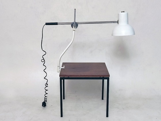 Lampe de table ancienne à pince, rare, issue du secteur médico-industriel.