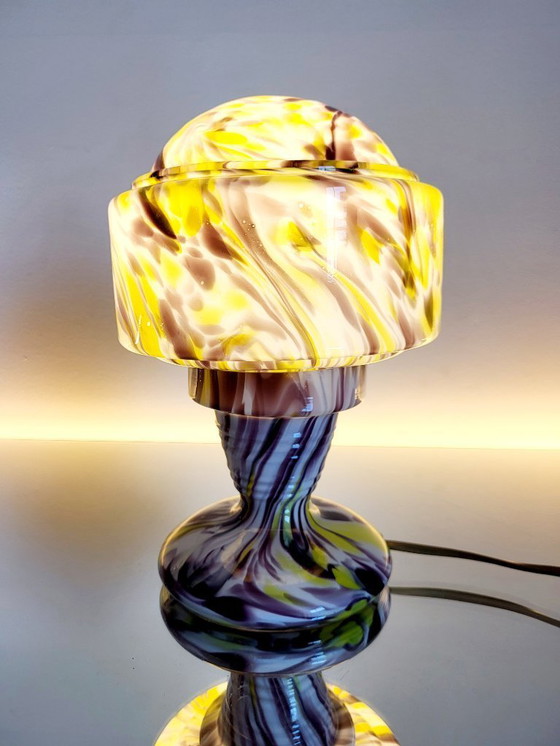 Lampe de table Art déco en verre opalin multicolore, Verreries de Scailmont, Henri Heemskerk, Belgique,années 1930