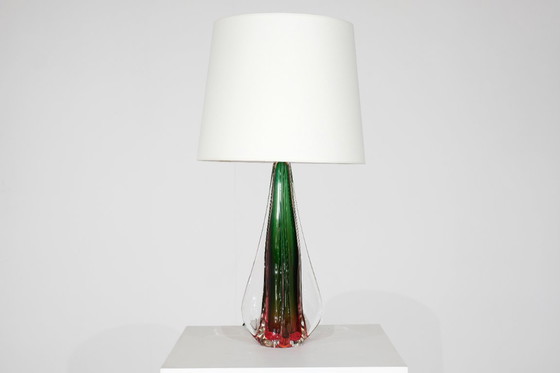 Lampe de table en verre de Murano rouge, vert et transparent Sommerso,