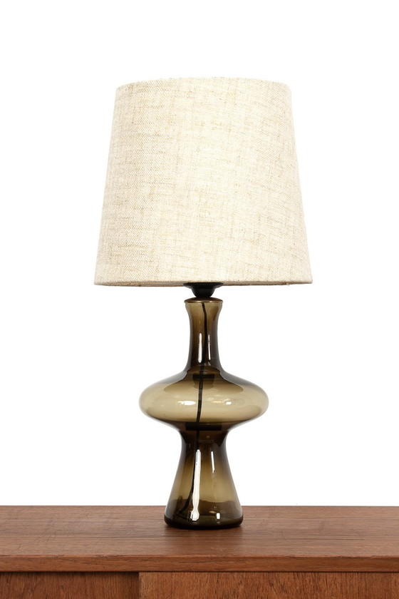 Lampe de table Fog & Mørup « Brams 3 », conçue par Lisbeth Brams dans les années 1960 et ornée d'un abat-jour en verre coloré E7185 Havana. En bon état vintage.