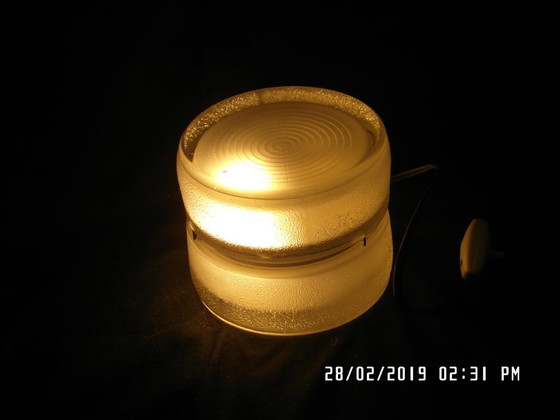 La lampe de table JOJO, créée par Eugenio Tedeschi pour Fontana Arte en 1971, est une pièce vintage qui allie design et fonctionnalité. Fabriquée en verre et en métal, elle diffuse une lumière douce, idéale pour créer une ambiance chaleureuse. Un objet parfait pour ceux qui recherchent une pièce de design unique et intemporelle.