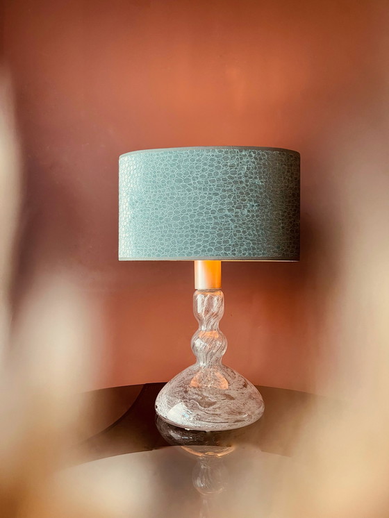 L'abat-jour n'est pas d'origine, mais il s'harmonise parfaitement avec la forme et les couleurs de la lampe.