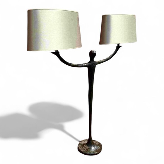 Cette magnifique lampe de table en bronze de Porta Romana est bien plus qu'un simple luminaire : c'est une véritable œuvre d'art. Son pied sculptural, évoquant une figure stylisée aux bras levés, lui confère une allure expressive, presque poétique.
