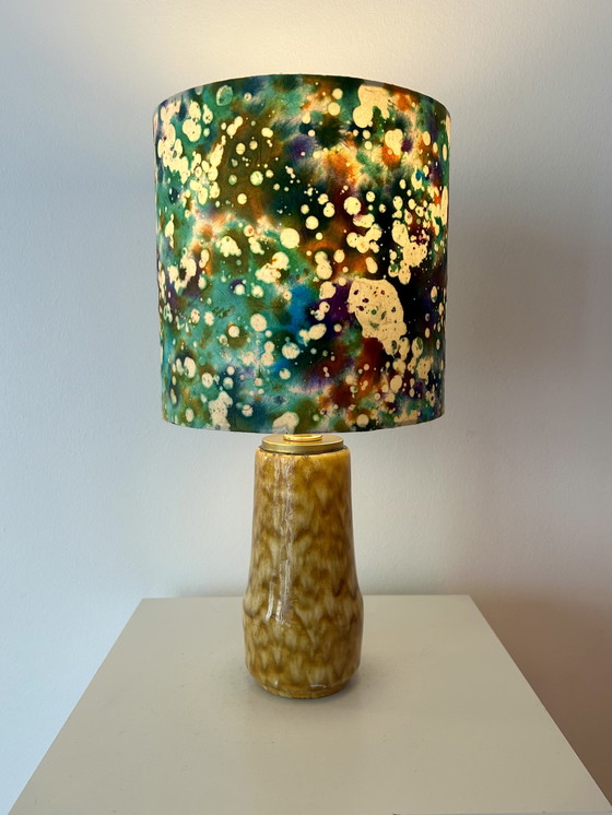 Cette lampe est une pièce unique, fabriquée artisanalement à partir de céramique vintage et dotée d'un abat-jour sur mesure. Il convient aussi bien comme éclairage d'accentuation décoratif à l'intérieur que comme source de lumière flexible dans les espaces extérieurs abrités.