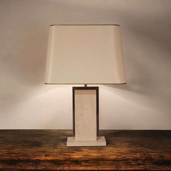 Lampe de table vintage en travertin et chrome doré - Pierre naturelle