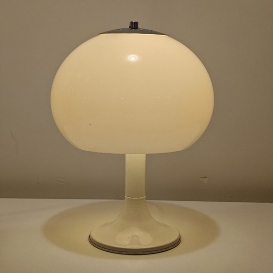 Cette jolie lampe est encore en très bon état vintage. L'abat-jour en plastique blanc présente quelques petites rayures ici et là, mais est par ailleurs en très bon état. Grâce à la teinte douce du plastique, cette lampe diffuse une lumière agréable.
