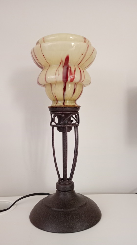 Cette lampe est non seulement une pièce fonctionnelle, mais aussi une œuvre d'art à part entière. Idéale pour les amateurs de vintage et d'Art déco. Contactez-nous pour plus d'informations ou pour ajouter cette lampe unique à votre collection.