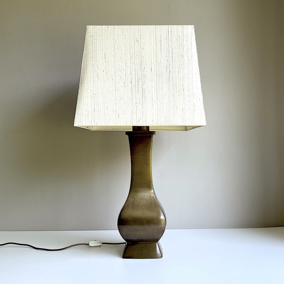 légères traces d'utilisation sur le pied de la lampe, une entretoise de l'abat-jour est légèrement courbée, voir photos.