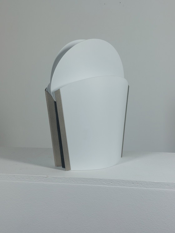 L'exquise lampe de table vintage Sun-Ra, signée Samuel Parker pour Slamp (Italie), est un véritable chef-d'œuvre de design. L'alliance de l'Opalflex, du cuir et du métal anodisé lui confère une esthétique unique, à la fois moderne et intemporelle.
