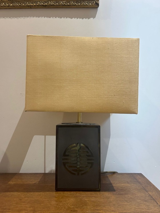 Élégante lampe à poser datant des années 70, caractérisée par une structure en acier associée à des éléments en laiton, offrant un contraste raffiné typique du design de cette période. Son esthétique épurée et graphique s’inscrit pleinement dans l’esprit moderniste et décoratif des années 1970.
