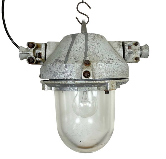 Lampe industrielle grise en fonte d'aluminium antidéflagrante, années 1970