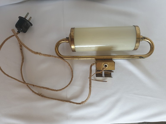 Cette magnifique applique murale Mid Century est un ajout parfait pour les amateurs de design vintage. La lampe est dotée d'un élégant cadre métallique et d'un abat-jour en verre opale de couleur crème, offrant un éclairage chaleureux et ambiant. Elle est idéale pour les salons, les chambres à coucher ou les couloirs. La lampe a un look authentique typique du style Mid Century Modern.