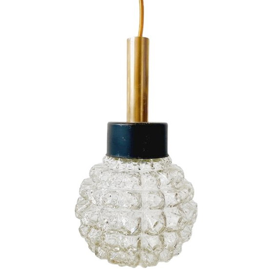 Cette lampe suspendue cascade en verre vintage avec fixation noire et dorée a un look chic et cool. L'abat-jour en verre vintage a été doté d'un nouveau cordon en fer noir. La lampe vintage améliorée est livrée avec un capuchon de plafond noir. Pratique, cette beauté est déjà prête à être suspendue au plafond. La lampe suspendue est dans un état vintage raisonnable