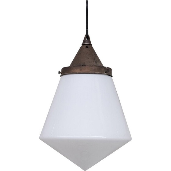 Lampe suspendue conique en opaline du Mid Century, France années 1950