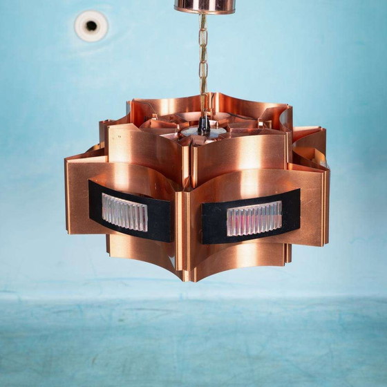 Lampe suspendue en cuivre de l'ère spatiale Lampe suspendue design Werner Schou