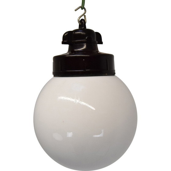 Lampe suspendue industrielle en verre, Tchécoslovaquie, années 1950