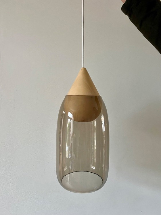La suspension Mater Liuku Drop apporte une touche raffinée à tout intérieur grâce à son design élégant, à la fois moderne et intemporel. Cette lampe allie la beauté naturelle du tilleul laqué mat à la subtile transparence du verre fumé, créant ainsi une ambiance chaleureuse et accueillante dans n'importe quelle pièce.