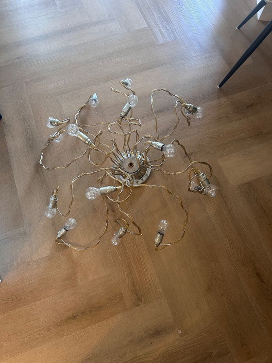 Cette magnifique lampe vintage est une véritable pièce maîtresse dans tout intérieur. Avec ses bras métalliques gracieux et sa finition dorée, elle dégage une élégance intemporelle qui s'harmonise parfaitement avec les décors classiques et modernes. La lampe dispose de plusieurs sources lumineuses, créant une ambiance chaleureuse et accueillante dans votre espace.