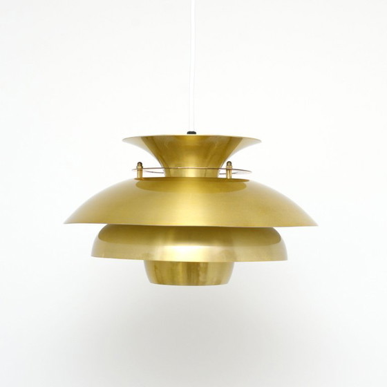Une magnifique lampe dorée, conçue selon le principe d'un système d'ombres réfléchissantes, qui diffuse la lumière non seulement vers le bas mais aussi sur les côtés. Ainsi, la lumière illumine non seulement l'espace, mais aussi la lampe elle-même. Des lignes scandinaves classiques et une forme universelle qui s'intègre à tous les intérieurs.