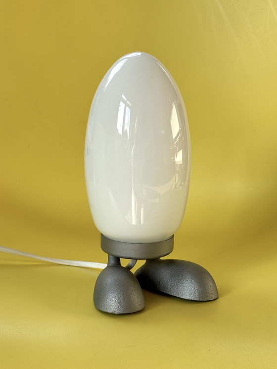 Cette lampe vintage unique d'IKEA a été conçue par le designer japonais Tatsuo Konno, connu pour ses créations minimalistes et ludiques qui allient la simplicité scandinave à l'esthétique japonaise. La lampe Dino Egg, fabriquée en verre blanc, a une forme ovale caractéristique qui rappelle un œuf de dinosaure. Elle attire ainsi l'attention dans n'importe quel intérieur et est appréciée des collectionneurs de design vintage.